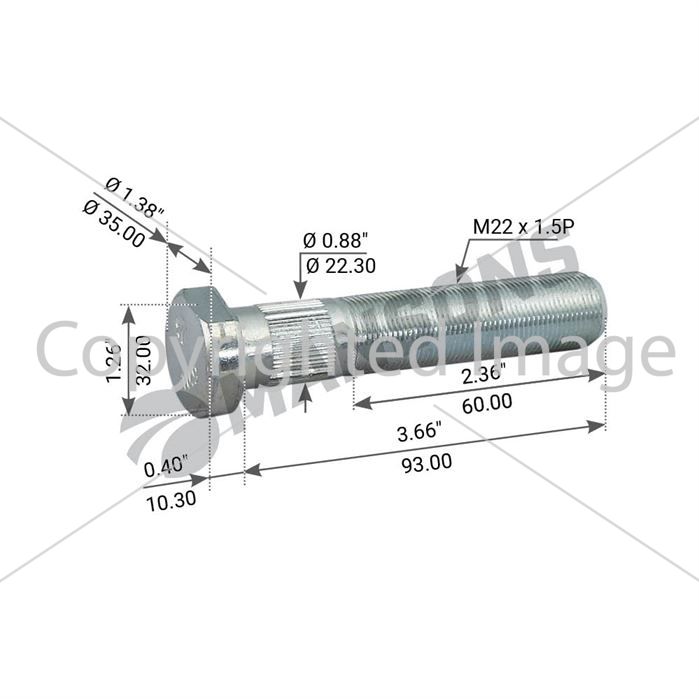 Шпилька колісна М22х1,5/93 SAF SKRZ 9019/9022,1303107512,FE02407,AUG65162,SAMPA075.100
